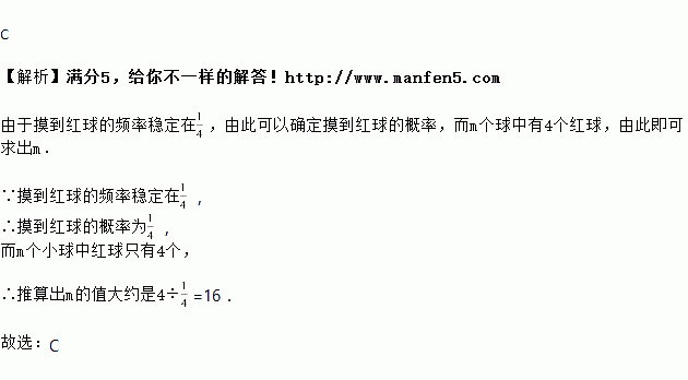 个红球,每次将球摇匀后,任意摸出一个球记下颜色再放回纸箱中,通过大量的重复摸球实验后发现,摸到红球的频率稳定在![]()