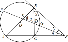 解答 (1)证明:∵PB切⊙O于点B,
