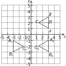 分析 (1)作CH⊥AB于H,如图,利用等边三角形的性质和三个顶点的坐标特征可判断∴AB∥y轴,AB=2,AH=BH=1,∠A=60°,则可写出H点坐标,接着利用含30度的直角三角形三边的关系求出CH即可得到C点坐标,然后利用关于原点和关于y轴对称的点的坐标特征可分别写出C1,C2的坐标;