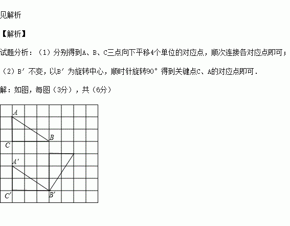 (1)将△ABC向下平移4个单位得△A′B′C′;