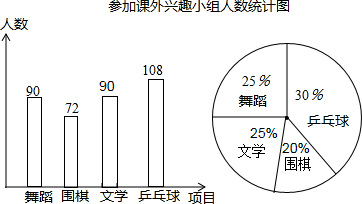 舞蹈小组的学生百分比为:1-25%-25%-30%=20%.