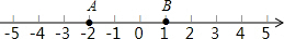 (2)点A、B分别表示-2、1,在数轴上表示为: