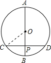 分析:连OC,AB垂直于弦CD,由垂径定理得到PC=PD,得到PC=3;由P是OB的中点,则OC=2OP,得∠C=30°,PC=OP,则OP=,即可得到OC,AB.