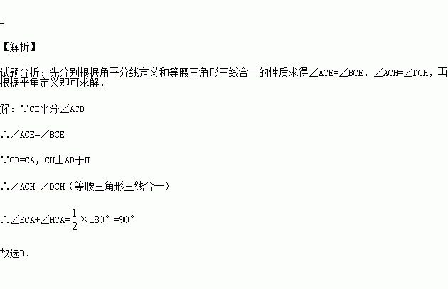 (2015秋•定陶县期末)如图,CE平分∠ACB,CD=CA,CH⊥AD于H,则∠ECA与∠HCA的关系是( )
