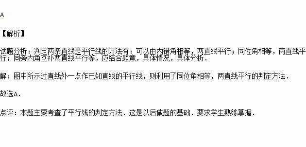 如图,给出了过直线外一点作已知直线的平行线的方法,其依据是( )
