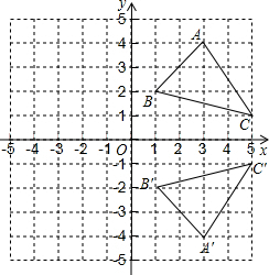 △A′B′C′与原△ABC的位置关系是关于x轴对称.