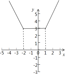 分析 分x<-2时、-2≤x≤1时、x>1时三种情况去掉函数表达式中的绝对值,函数就化为分段函数,画出函数图象即可.