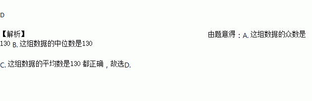 A. 这组数据的众数是130 B. 这组数据的中位数是130