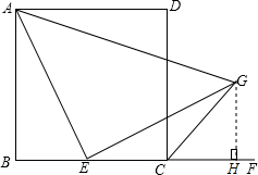 分析 作GH⊥BF于H,先由正方形的性质可得:∠B=∠BCD=∠DCH=90°,AB=BC,然后由CG平分∠DCF,可得∠GCH=45°=∠CGH,进而可得:CH=GH,然后设CH=GH=a,BE=b,CE=c,则:AB=BC=b+c,EH=a+c,由EG=AE,可得EG2=AE2,即EH2+GH2=BE2+AB2,从而可得:(a+c)2+a2=b2+(b+c)2,进而得到:a-b=0,即a=b,所以GH=BE,然后由HL定理证明Rt△EHG≌Rt△ABE,进而得到∠HEG=∠BAE,所以∠HEG+∠BEA=∠BAE+∠BEA=90°,从而可得∠AEG=90°,即AE⊥EG得证.