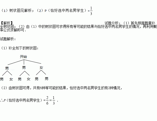我校开展“文明小卫士”活动,从学生会“督查部”的3名学生(2男1女)中随机选两名进行督查.