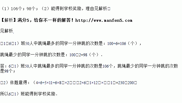 (1)6(1)班50人中跳绳最多的同学一分钟跳的次数是多少个,跳绳最少的同学一分钟跳的次数是多少个;
