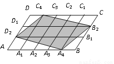 如图,在平行四边形ABCD中,点A1,A2,A3,A4和C1,C2,C3,C4分别是ABCD的五等分点,点B1,B2和D1,D2分别是BC和DA的三等分点,已知四边形A4B2C4D2的面积为2,则平行四边形ABCD的面积为( )