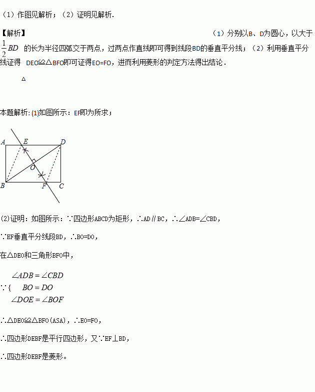 (1)作BD的垂直平分线EF,分别交AD,BC于点E,F,垂足为点O;(要求用尺规作图,保留作图痕迹,不要求写作法)
