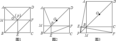 (1)如图1,当点P与点O重合时,延长FP交AB于点M,求证:AP=EF;