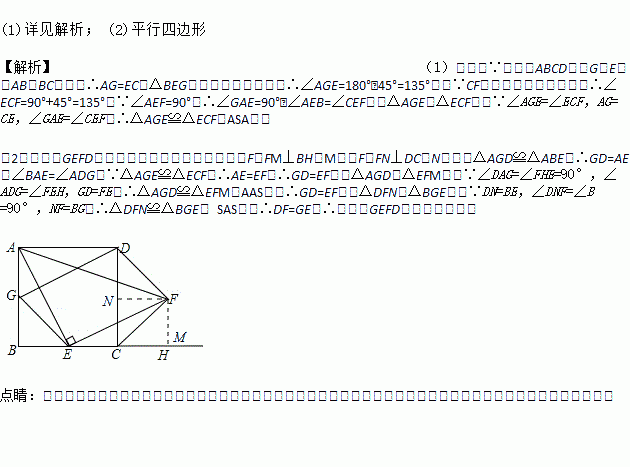 (1)证明:△AGE≌△ECF;