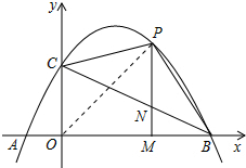 ∴PM=-$\frac{1}{2}{m}^{2}$+$\frac{3}{2}$m+2,OM=m.