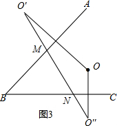 .点M、N分别在AB和BC上,则点M、N分别在何处时,才能使OM+MN+NO最小?请在图(3)中画出点M、N的位置(保留痕迹,不要求证明),并直接写出OM+MN+NO的最小值.
