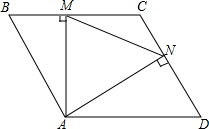 分析:根据题意,在Rt△ABM中利用勾股定理算出AM=12,根据三角函数定义得cosB=cosD,由平行四边形的性质,最后在△AMN中利用余弦定理加以计算,即可得到MN的长.
