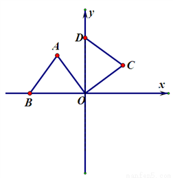 (1)将ΔAOB绕点O顺时针旋转得到ΔCOD,其中C与A对应,D与B对应,并且点D落在y轴上。