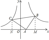 (3)过点B、C作x轴的垂线,垂足为M、N,利用AAS得到三角形ABM与三角形CAN全等,利用全等三角形对应边相等得到BM=AN,AM=CN,设OA=x,表示出C坐标,代入双曲线解析式列出关于x的方程,求出方程的解得到x的值,即可确定出A的坐标.