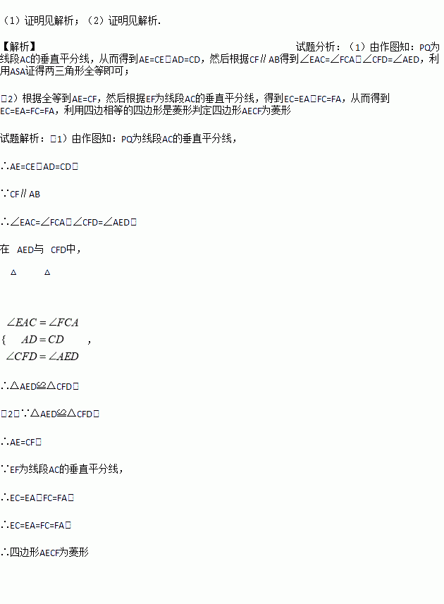 (1)求证:△AED≌△CFD;