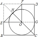 分析:延长EO交DC于点G,根据折叠对称可以知道OE⊥AB,所以OG⊥CD,即点G是切点,AO交EF于点H,点H是切点.结合图形可知OG=OH=AH=EH,等于⊙O的半径,先求出半径,然后求出正方形的边长.