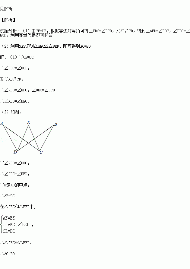 (2015秋•镇江期末)已知:如图,AB∥CD,E是AB的中点,CE=DE.