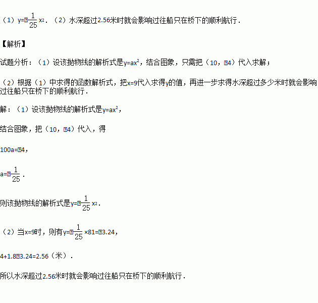 (2)设正常水位时,桥下的水深为1.8m,为保证过往船只顺利航行,桥下水面宽度不得小于18m,求水深超过多少米时,就会影响过往船在桥下顺利航行?