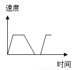 小明一出校门先加速行驶,然后匀速行驶一段后,在距家门不远的地方开始减速,而最后停下,下面哪一副图可以近似地刻画出以上情况:( )