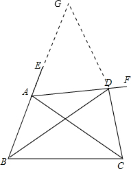 如图,D是△ABC的外角∠EAC的平分线AF上一点,连接BD、CD.求证:AB+AC<DB+DC.