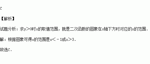 (2015秋•市中区期末)已知二次函数y=x2+bx+c的图象如图所示,若y>0,则x的取值范围是( )