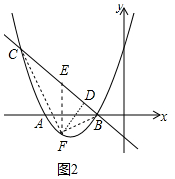 ¢Úµ±µãFÔÚÖ±ÏßBCÏ·½Ê±£¬Èçͼ2ÖУ¬×÷FD¡ÍBCÓÚD£¬FE¡ÍxÖá½»Ö±ÏßBCÓÚF£¬![]()