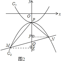 ·Ö±ð¹ýM¡¢N×÷yÖáµÄ´¹Ïß¶ÎME¡¢NF£¬´¹×ã·Ö±ðΪE¡¢F£¬¹¹½¨ÏàËÆÈý½ÇÐΡ÷MPE¡×¡÷PNF£¬ÓɸÃÏàËÆÈý½ÇÐεĶÔÓ¦±ß³É±ÈÀýÍÆÖªx1x2=$\frac{9}{2}$£¬Ôòb+2=-$\frac{81}{4}$£¬¿ÉÒÔÇóµÃbµÄÖµ£¬ËùÒÔµãQµÄ×ø±ê£¨0£¬-$\frac{13}{2}$£©£®