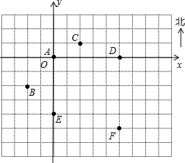如图是小明家周边地区的平面示意图:A-小明家;B-邮局;C-书店;D-车站;E-超市;F-银行.