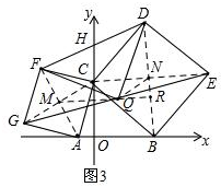 Èçͼ3£¬Á¬½ÓAF¡¢CG½»ÓÚµãM£¬Á¬½ÓCE¡¢BD½»ÓÚµãN£¬Á¬½ÓMQ¡¢NQ£¬ÑÓ³¤MQ½»BDÓÚµãR£¬![]()