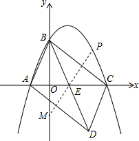 ,OE=2,可根据三角函数求出∠OEB=60°.作∠BEC的角平分线EP与抛物线交于点P,并反向延长与y轴交于点M,可知点P处于抛物线上的BC之间,即为所求之点,显然可知∠OEM=60°,利用三角函数求出OM=2