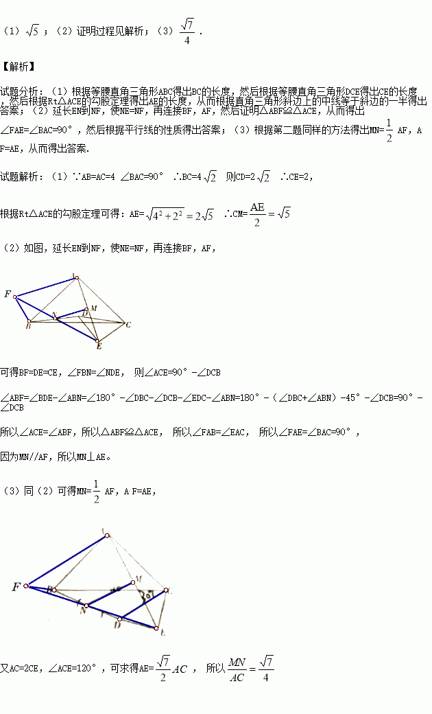 (3)如图3,将图2中的△CDE绕点C逆时针旋转,使∠BCD=30°,连接BD,点N是BD中点,连接MN,
