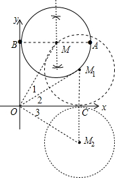 (3)当圆M绕原点O顺时针旋转到圆M1与x轴相切,如图,作M1C⊥x轴于C,