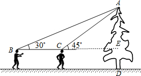 分析 延长BC交AD于E,设AE的长为x米,在Rt△ACE中,求得CE=AE,然后在Rt△ABE中求得BE,利用BE-CE=BC,可得关于x的方程,解得便求得结论.