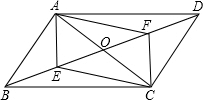 分析:(1)在平行四边形ABCD中,AC与BD互相平分,OA=OC,OB=OD,又E,F为OB,OD的中点,所以OE=OF,所以AC与EF互相平分,所以四边形AECF为平行四边形;
