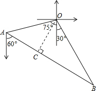 分析 过O作OC⊥AB于C.先判断出△AOC是等腰直角三角形,判断出∠A和∠B的度数,利用三角函数求出BC的长,求出乙船从O点到B点所需时间为2小时,甲船追赶乙船速度为(15+15$\sqrt{3}$)海里/小时.