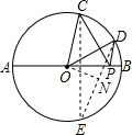 分析:作出点C关于AB的对称点E,连接DE交AB于点P,此时PC+PD最小,就等于DE的长.由题意可知∠DOE=120°,然后在△DOE中求出DE的长即可.