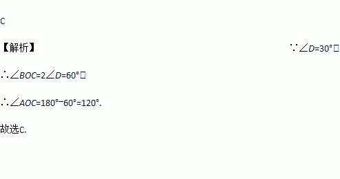 如图所示,AB是⊙O的直径.C,D为圆上两点,若∠D=30°,则∠AOC等于( )
