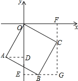 分析 作AD⊥y轴于D,BE⊥y轴于E,CF⊥x轴于F,EB和FC交于点G,则四边形OEGF是矩形,EG=OF,由正方形的性质和已知条件得出AD=$\frac{1}{2}$OA=3,∠FOC=30°,得出OD=$\sqrt{3}$AD=3$\sqrt{3}$,CF=$\frac{1}{2}$OC=3,OF=$\sqrt{3}$CF=3$\sqrt{3}$,同理:BG=3,CG=3$\sqrt{3}$,求出EG、FG、BE,即可得出结果.