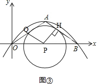 当⊙P与边AB只有1个公共点时,⊙P与边AB相切与点H,
