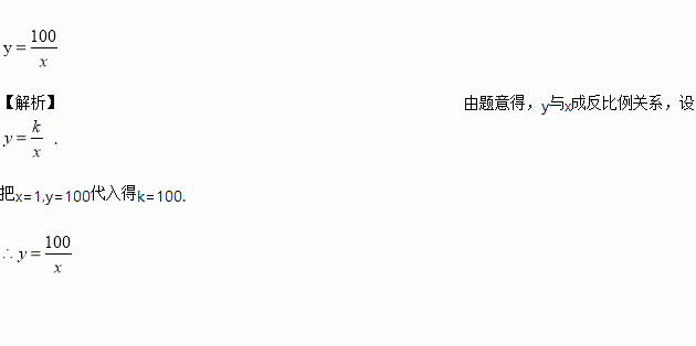 验光师测的一组关于近视眼镜的度数y与镜片的焦距x的数据,如表: