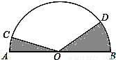 如图,已知C,D是以AB为直径的半圆周上的两点,O是圆心,半径OA=2,∠COD=120°,则图中阴影部分的面积等于 .