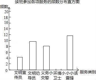 在我市实施“城乡环境综合治理”期间,某校组织学生开展“走出校门,服务社会”的公益活动.八年级一班王浩根据本班同学参加这次活动的情况,制作了如下的统计图表: