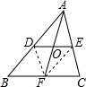 △ABC中,DE是其中位线,点O是DE上的一个动点,AO延长线交BC于F,当O运动到DE的什么位置时,四边形ADFE为平行四边形?