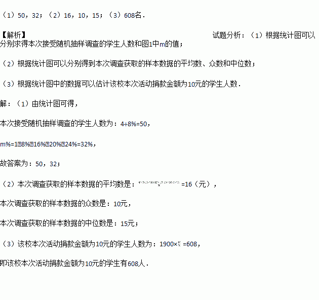 ËÄ´¨ÑŰ²·¢ÉúµØÕðºó£¬Ä³Ð£Ñ§Éú»áÏòȫУ1900ÃûѧÉú·¢ÆðÁË¡°ÐÄϵÑŰ²¡±¾è¿î»î¶¯£¬ÎªÁ˽â¾è¿îÇé¿ö£¬Ñ§Éú»áËæ»úµ÷²éÁ˲¿·ÖѧÉúµÄ¾è¿î½ð¶î£¬²¢Óõõ½µÄÊý¾Ý»æÖÆÁËÈçÏÂͳ¼ÆÍ¼¢ÙºÍͼ¢Ú£¬Çë¸ù¾ÝÏà¹ØÐÅÏ¢£¬½â´ðÏÂÁÐÊÇÎÊÌ⣺
